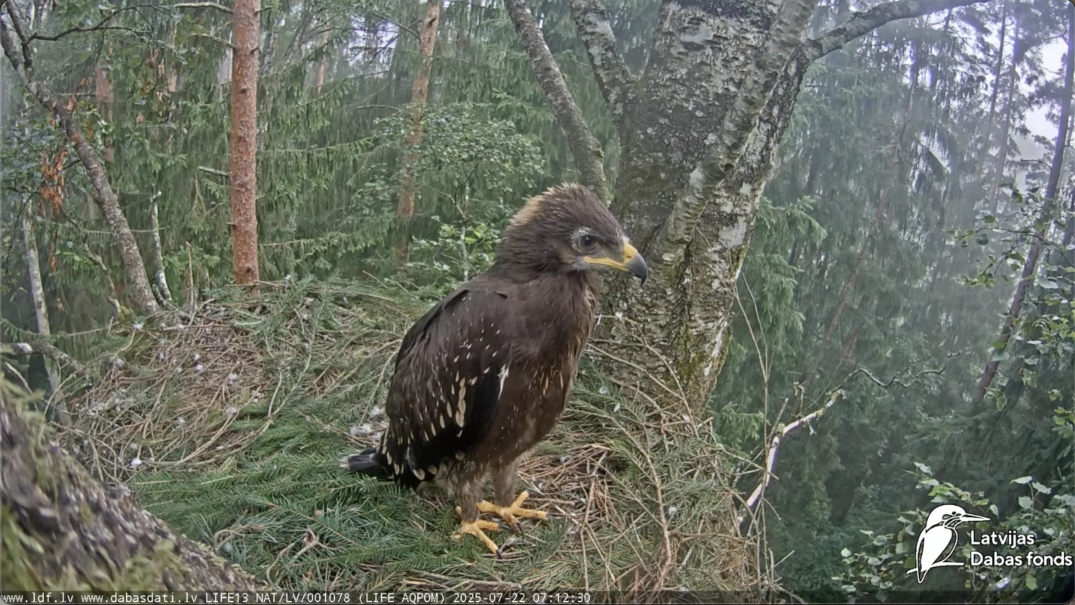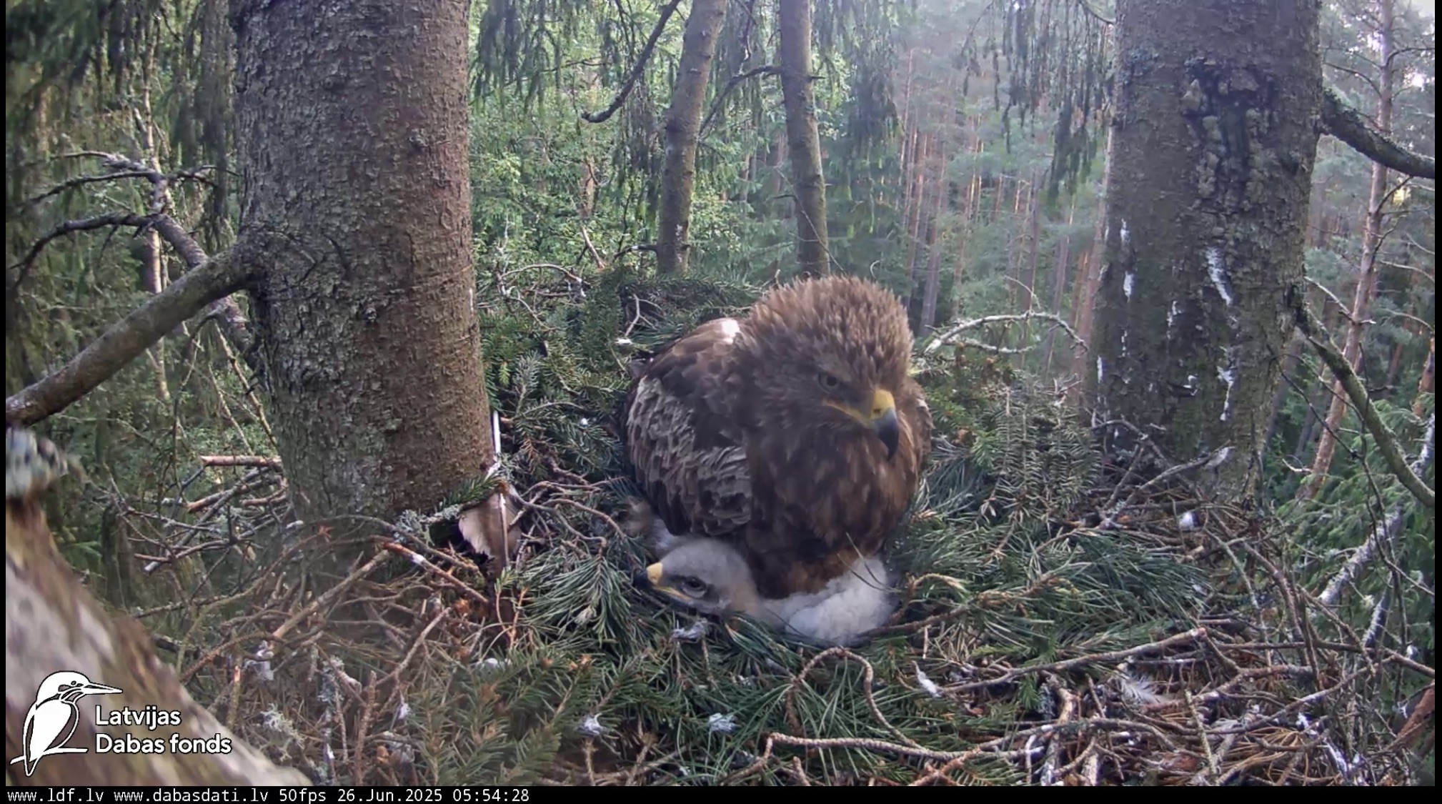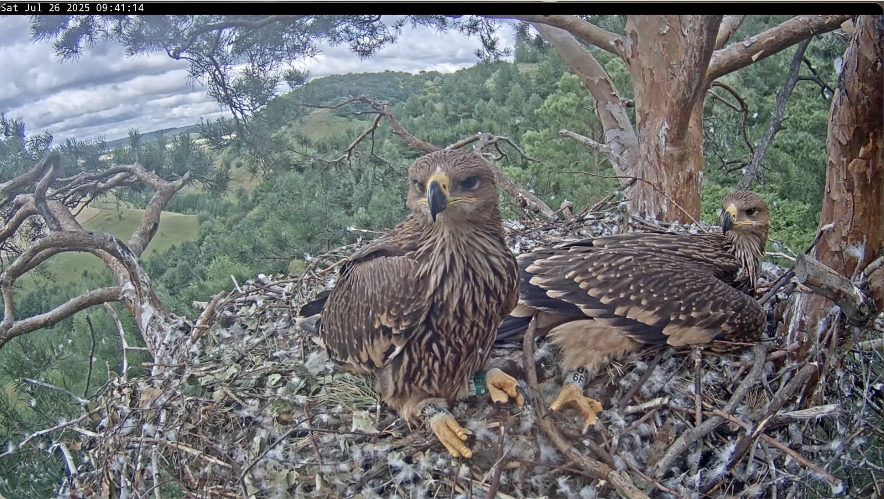 I watched 3 nests of Lesser Spotted Eagles in July/August 2025 and they were all adorable and fun. I especially liked that this nest had an egg that didn't hatch, which survived all the way to Grieta's fledge day. Egg just lives in the nest still, and the eagles don't pay it much attention, but I assume it'll get broken or stolen and eaten before next year's breeding season.